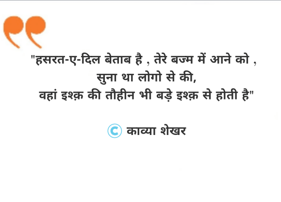 Categories Uncategorized हसरत-ए-दिल Post author By kavyashekhr Post date 8th May 2020 No Comments on हसरत-ए-दिल Share this: Share on X (Opens in new window) X Share on Facebook (Opens in new window) Facebook Like Loading... Related By kavyashekhr अल्फाजों का गहरा समंदर हो और डूबकर कही नहीं जाना है बस डूबते जाना है , डूबते जाना है । View Archive → ← ठहर जाना तुम → इब्तिदा-ए-इश्क़ Leave a comment Cancel reply Δ